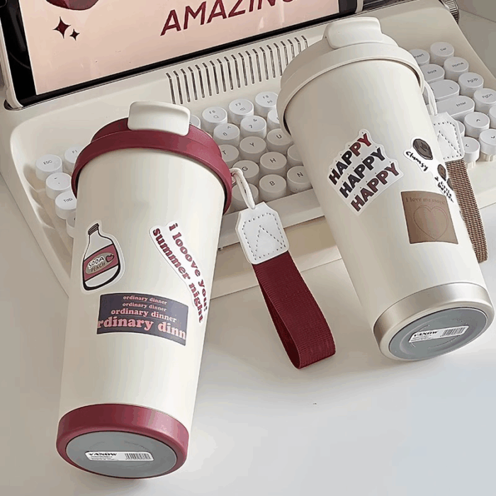 Retro coffee cup 316 stainless steel insulated cup, cute and simple office water cup, portable and portable straw cup